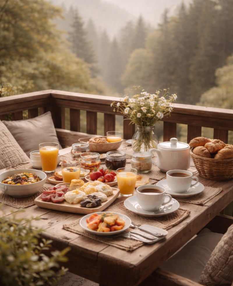Poranki zaczynają się u nas od zapachu świeżego pieczywa i spokojnej chwili przy kawie. Śniadania wliczone są w cenę pokoi i przygotowywane z myślą o prostocie, świeżości i domowym smaku.
